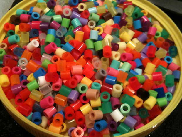 Elegir un color o colores de granos para su forma. Hice un hueso y algunos peces, y cada uno fueron probablemente alrededor de una pulgada de largo. Llenar el molde con las cuentas para averiguar la cantidad correcta. Después estas de pie en un pedazo de papel de pergamino, y otra mentira cuidadosamente en la parte superior. Estos hierro hasta que están obteniendo bastante planas. Es bueno tener su molde justo en frente de usted, porque usted necesita rápidamente desprenda los granos derretidos y presionar en el molde. no necesita estar perfectamente en allí. Tan pronto como presione en, tomará la forma un poco y te derriten más próximo.