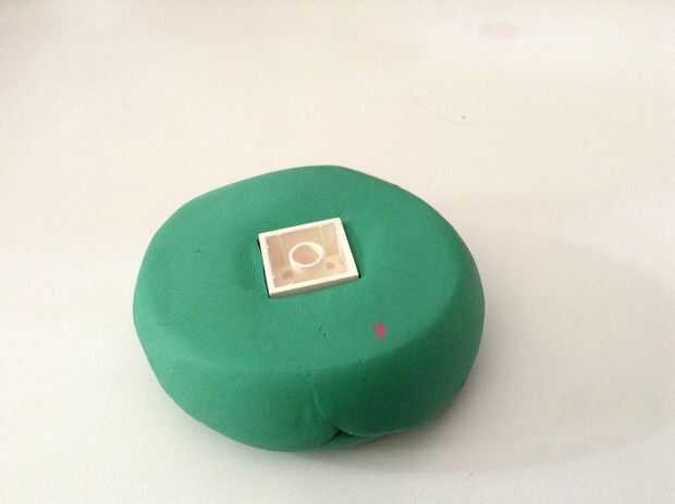 El primer paso para este proyecto es hacer el molde. Para hacer el molde cuidadosamente Inserte el Lego en la arcilla. Una vez que el Lego en la arcilla utilizar los alicates para tomarlo hacia fuera (es más fácil conseguir el Lego hacia fuera si usted meneo un poco cuando se toma fuera de la arcilla)
