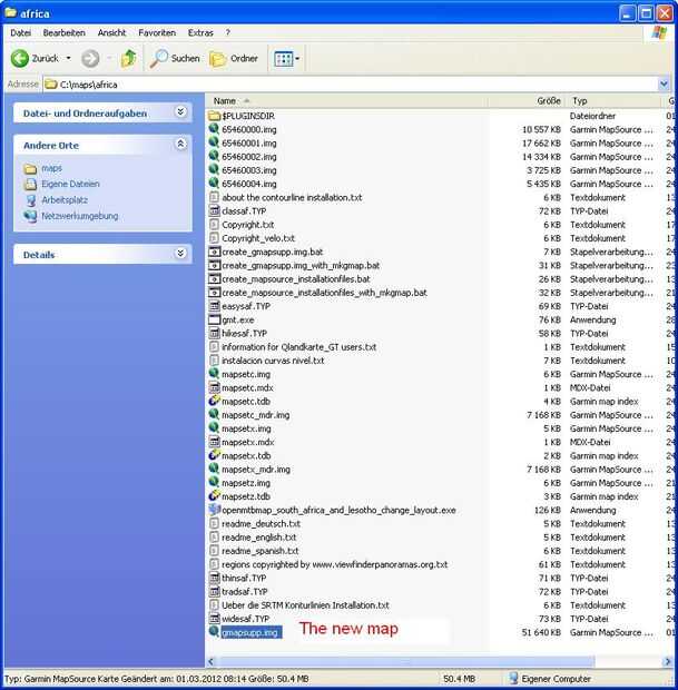 Cuando haya terminado, hay un nuevo archivo gmapsupp.img en la carpeta.