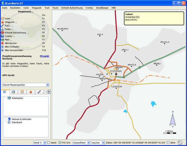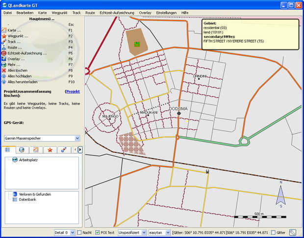 También puede abrir este mapa con Qlandkarte lo que hiciste antes y mira lo que está dentro del mapa. Tanzania es bastante vacío. Sólo algunas partes del país ya están asignadas. Si vas allí, Únete a la comunidad de openstreetmap y proporcionar algunos datos! http://www.openstreetmap.org/