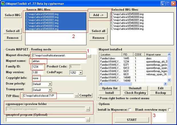 Instale estos dos programas y comience el MapSetToolkit. Mira la segunda foto para ver lo que tienes que ajustar.