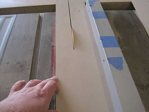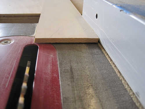 A continuación, configurar mi valla para 3" porque ya había cortado un material así que ya tenía un borde de 15 grados en ella. Si usted comienza con una pieza fresca, establece en 3.5", cortarla, luego situado a 3" y el otro borde.