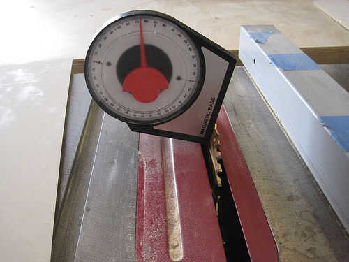 El primer paso es establecer su sierra en una inclinación de 15 grados. Usé un medidor magnético para esto. Es 1 grado en la foto porque los dientes de la hoja hacer el medidor para sentarse en un ángulo de 1 grado por lo que ajustar en consecuencia.