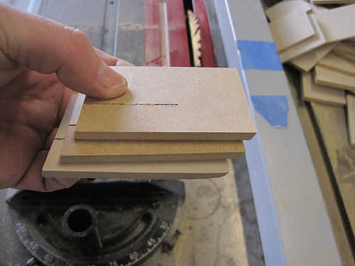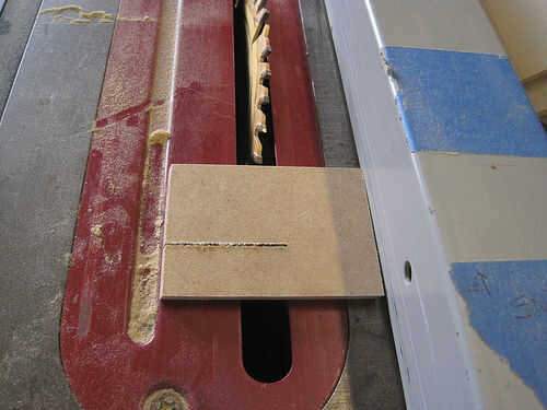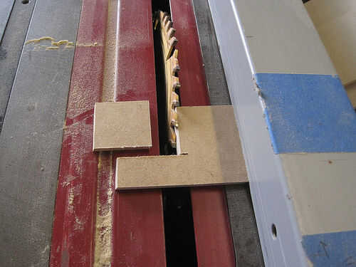 De la misma manera como la Sierra de cinta, esta configuración requiere cortar parcialmente la pieza y luego la forro hacia fuera. Esto no es fácil de hacer con seguridad. Te lo dejo a usted para averiguar la mejor manera de hacerlo en su equipo. Me aseguré que la hoja de Sierra fue tan baja como sea posible cortar limpiamente a través del material, mantener la mayor parte de mi mano en o sobre la cerca y utiliza mis dedos pulgar e índice para mover la pieza hacia adelante y hacia atrás.