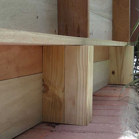 10. para compensar la modificación del diseño algunos bloques de 69 x 69mm fueron cortados a 180mm de longitud. Dos bloques se pegan y estos luego fueron atados a la base (de dentro y arriba). Funciona como un sueño!