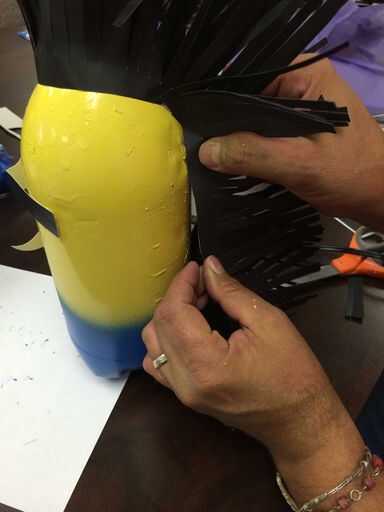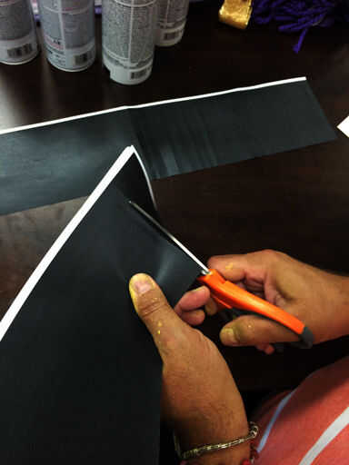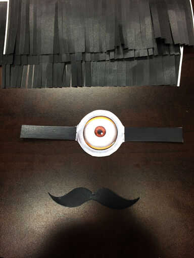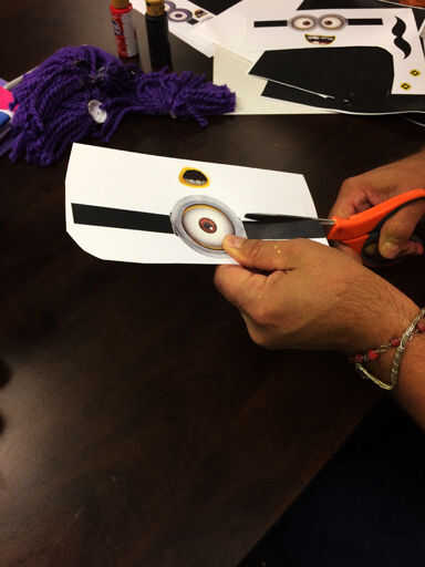 Pelo: Usar al menos 2 hojas negro, cortadas los papeles por la mitad (verticalmente) y pila. Empezar a cortar tiras de un lado. Cortan casi por completo. Deje aproximadamente 1/4 de pulgada por debajo del final. Hacer que cada tira sobre un 1/4 de una pulgada de ancho, también.