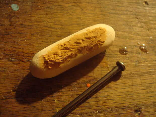Todo lo que tienes que hacer es hueco hacia fuera de una cavidad para la pieza del clavo montar, cubrir con masilla de madera, lije y vuelva a pintar o borrar capa (ver segunda foto). Si tienes algo de plomo de un JIG, o uno de esos pedazos de plomo que se cayó de un neumático de coche, usted puede martillo en una varilla delgada que se puede utilizar para conseguir más peso en una cavidad más pequeña.
