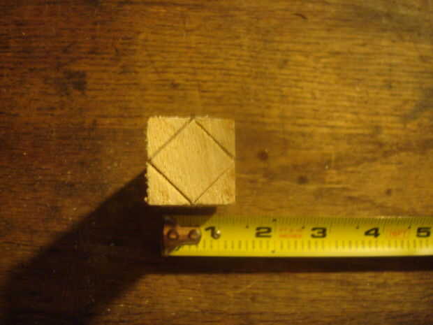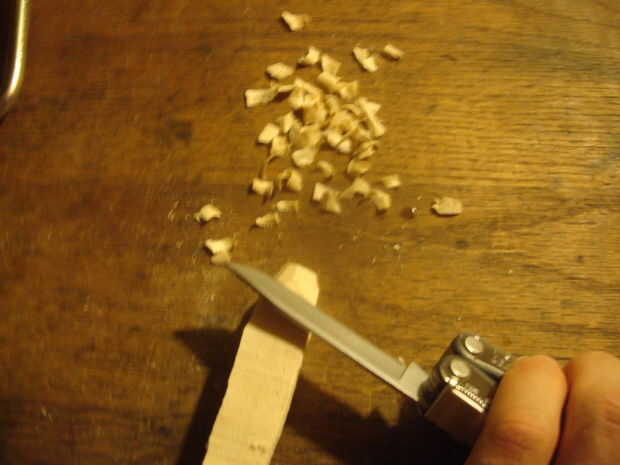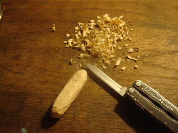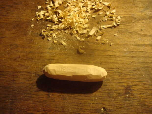 Tengo un torno (¡ todavía!) así que tuve que hacerlo de la manera antigua: tallando. Hizo más fácil cortando las 4 esquinas del bloque rectangular, longitudinalmente (ver arriba fotos) fino hacia fuera el señuelo.