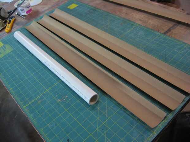 Para el tubo que estoy haciendo en las fotos aquí, estoy usando un 18" 1 1/4" PVC tubo para el formulario. He cortado tres tiras de papel de kraft que sean 3" de ancho y 36" de largo. Esta franja de tamaño funciona bien para esta forma de tamaño.