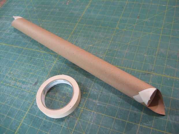 Envuelva la primera tira alrededor de la forma en forma de espiral, sin superponerse a cualquiera de las costuras. Use un pequeño trozo de cinta adhesiva para sujetar el papel kraft a la forma en ambos extremos.