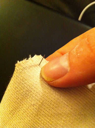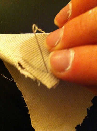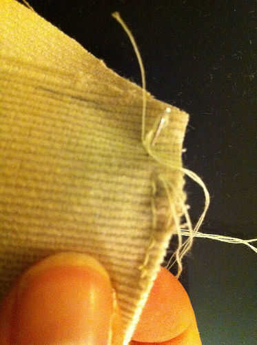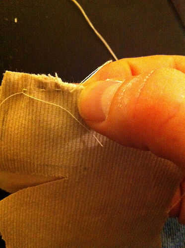 Una vez en el punto de que te agarre, vuelta su costura y puntada hacia el borde para una puntada fuerte.