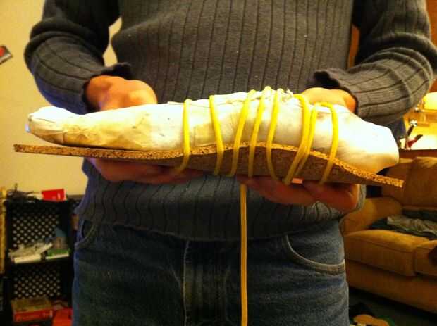 Atar firmemente la suela a la última que se ajusta a la forma de tu pie. Situado en el sol y deje que se seque.