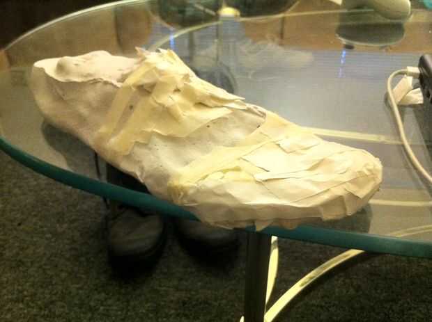 Siguiendo el diseño de tu zapato, coloque cinta y agregar al frente de su elenco para redondear el final que desee.