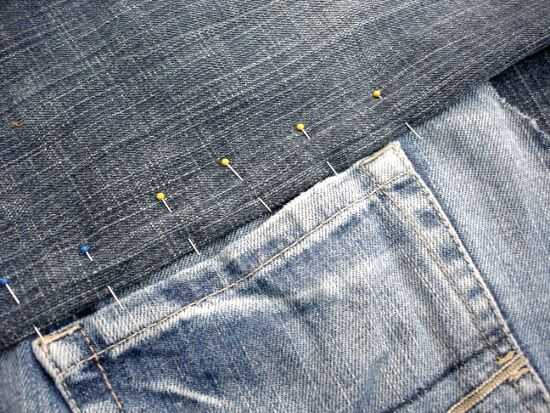Ahora, una vez que tengas todas tus piezas establecidas, puede empezar a prendiendo las piezas juntos. Todas sus piezas deben ser sobre el chapaleteo una pulgada o más. A partir de dos tocando piezas, doblar la sección superpuesta, sobre una media pulgada (o más, dependiendo de la superposición), y prender las dos piezas juntas. Mientras que pueden continuar y prender el resto de parado, le sugiero iniciar con sólo dos o tres pedazos y luego pasar el siguiente paso. Mientras más piezas a ser enganchados juntos, la manta se convierte en más pesada y más difícil trabajar con.