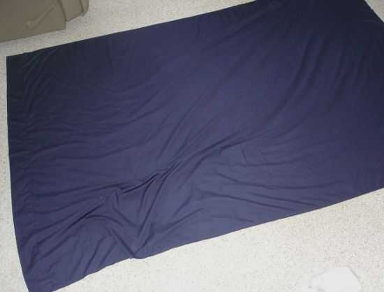 La hoja debe ser lo suficientemente grande como para tener al menos 6-8 pulgadas en los cuatro lados de la colcha de jean. Colocar la hoja en el suelo y eliminar todas las arrugas. Para tener un piso y ajuste bien el forro, la hoja debe colocarlos extendidos sobre el suelo. Una vez que la hoja es lisa, coloque los jeans en el centro de la hoja. Alise cualquier arrugas fuera de los jeans así.