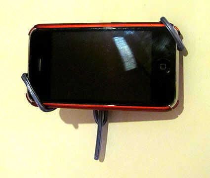 Quería una espera mínima pero seguro que todos los botones y puertos claro para facilidad de uso y de carga así que terminé con este enfoque de "bucles en las esquinas de la oposición". Mira cobarde pero es increíblemente resistente y fácil de usar. Puedo hace pivotar alrededor de mi cabeza sin temor el iPhone vuelan a su muerte. El teléfono también se encaja a presión fácilmente adentro y hacia fuera muy rápidamente.