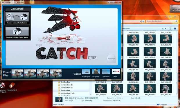Abrir la aplicación captura 123D y haga clic en el botón para"crear una nueva foto". Obtendrás un cuadro de diálogo para seleccionar archivos de imagen. Desplácese a la carpeta donde pones tus fotos y selecciónelos todos. (Puede usar el atajo de Ctrl-A para seleccionar todo, o haga clic en el primer archivo y luego pulse la tecla Mayús el último archivo a conseguirlos todos).