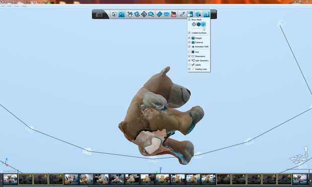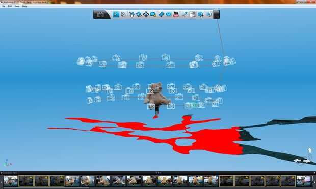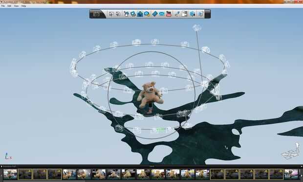 - La ventana de captura 123D muestra su objeto de destino y la posición estimada de la cámara alrededor de ella. Es posible que todas las cámaras bien se reunieron alrededor del objeto y uno o más realmente muy lejos de él. Me parece que esto sucede cuando se incluye una imagen fuera de foco. Para deshacerse de él, haga clic en la cámara periférica y 123D Catch pondrá de relieve la foto correspondiente en la "tira" en la parte inferior de la pantalla. Haga clic en la foto y pido que se quita de la escena. Guardar la escena y volver a abrir y ahora su objeto deben llenar en la mayor parte de la pantalla.