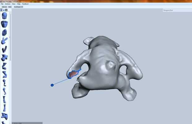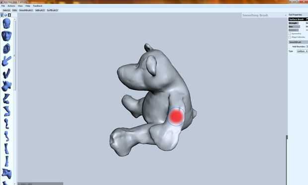 También queremos suavizar algunas asperezas, protuberancias y bultos. Seleccione el Smoothbrush en la barra de herramientas de Meshmixer y utilizarlo para "pintar" sobre las áreas ásperas de la modelo. Si usted termina haciendo mella, utilice el Volbrush para agregar volumen.
