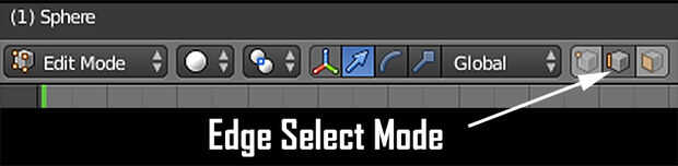Ya debería seleccionarse su esfera. Ahora queremos modificar el componente de partes de la esfera así Presione 'Tab' para entrar en modo de edición. Queremos seleccionar los bordes de la esfera, tan cerca de la parte inferior de la ventana 3D elegir 'Borde seleccione' modo.