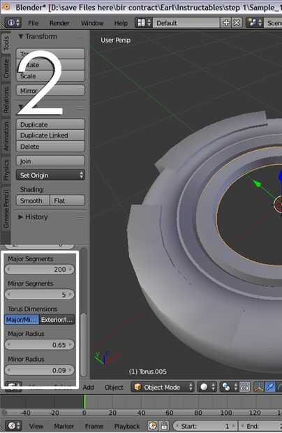 4. aplicar estos ajustes: principales segmentos: 200, segmento menor: 5, principales radio: 0,65 y por último menor radio: 0,09