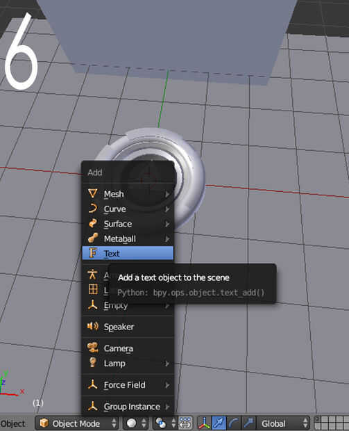 6. Añadir un texto. Presione "Shift + A" o ir a "Agregar" y seleccione "texto" (véase el cuadro