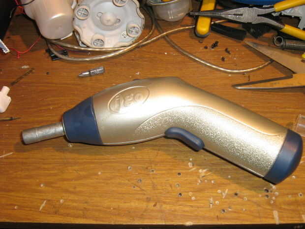 - 2 destornilladores eléctricos: para el movimiento. Los engranajes de reducción normal de muchos R/C coches están diseñados para velocidad y necesita fuerza para mover el robot entero, así que los destornilladores eléctricos son la solución rápida y económica.