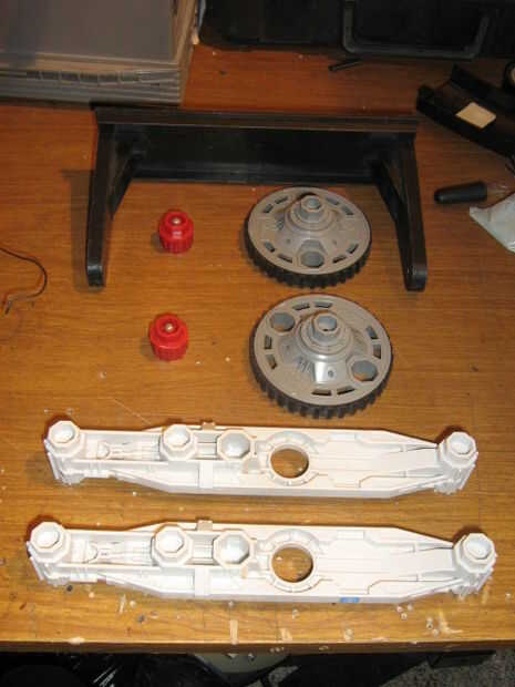- 2 ruedas auxiliares: para el equilibrio en el frente. Ellos vinieron de un juguete de construcción llamado Mechanix. También se necesitan algunas piezas extras de los juguetes de construcción.