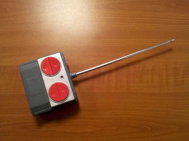 - Control remoto transmisor y receptor: se puede encontrar en cualquier coche de RC. Yo uso una vieja de otro proyecto, con 7.6V entrada. El control debe ser el tipo de cambio de la dirección de ruedas para girar a izquierda o derecha. El receptor va en el bote de basura, control de las ruedas. Por suerte, mi receptor tiene baterías recargables y un cargador.