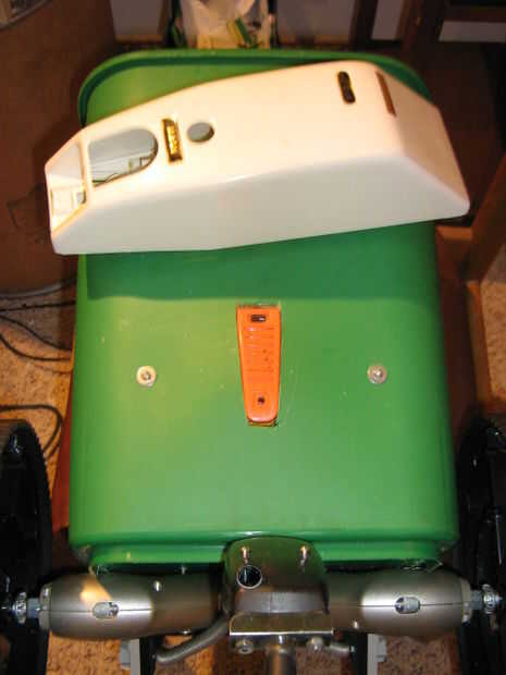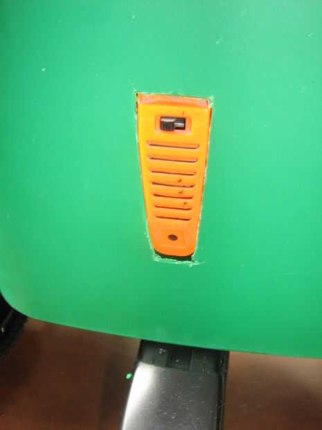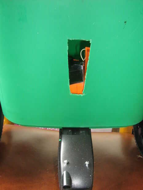 En la parte trasera, tienes una mochila hecha de un dispensador de jabón líquido, cuando se tienen el puerto de carga de R/C, los interruptores para R/C del receptor y los ojos y la caja de baterías para los ojos.