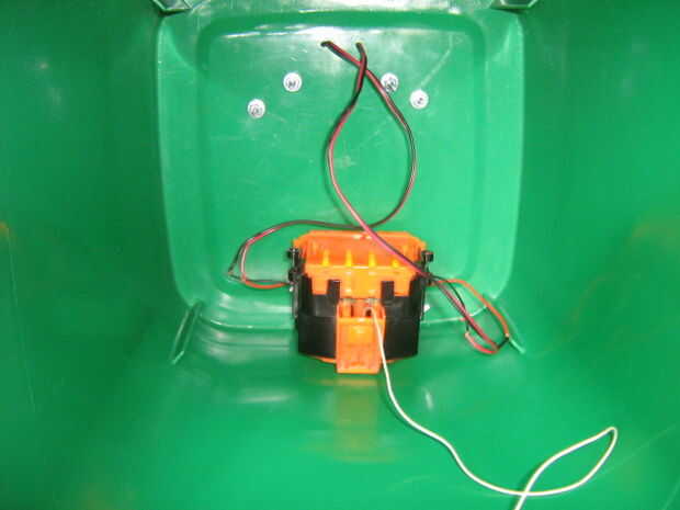 Acerca de electronis del robot, tiene dos circuitos separados con fuentes de energía separadas: una para R/C y otra para los ojos (alimentados por dos pilas AA). Hay dos razones: