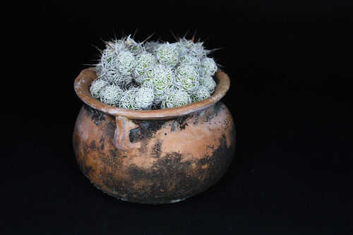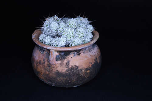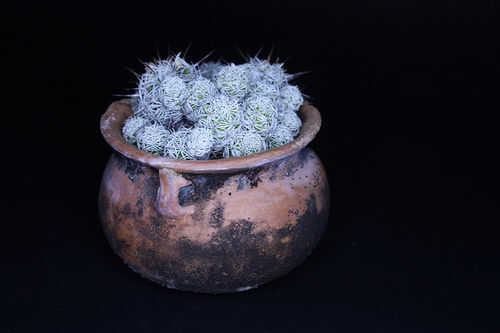 Coloqué una olla con un cactus pequeño encima de un papel negro