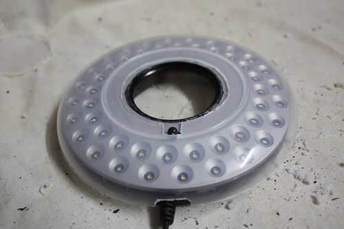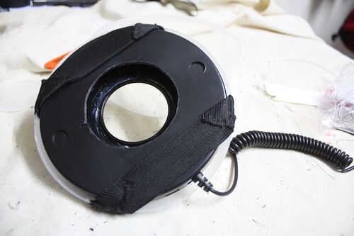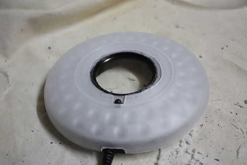Para poder colocar el difusor para el OVNI me corte ranuras en los lados y utiliza bandas elásticas negras. Usted puede comprar en tiendas de costura.