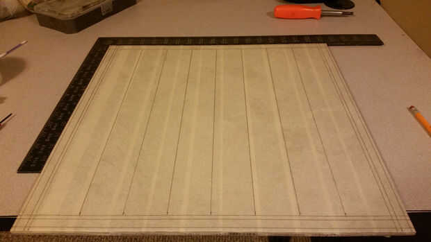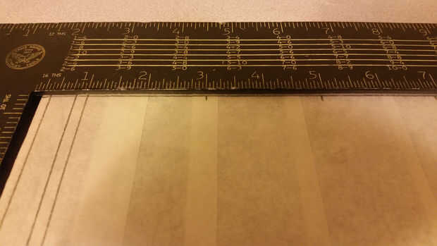 Espuma: Coloque el lado gobernado de su plaza a lo largo de la parte superior de la teja, justo debajo del borde superior (en el centro entre 1" y 17", para facilitar las cosas) y haga una marca cada 2 pulgadas.