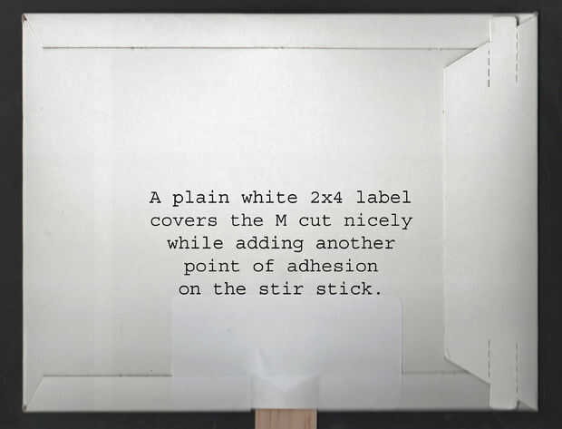 Usar dos 2" por 4" blanco impresoras de etiquetas para cubrir la "M" hendiduras a ambos lados del correo como se muestra. Esto proporciona otro punto de adherencia de la varilla de mezclar además de hacer el ventilador ver más.