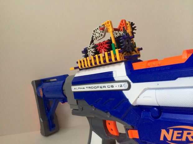 K'nex, como de costumbre, puede solucionar el problema. Las versiones pequeñas de los conectores y barras de clásico para niños (también conocido como micro-K'nex), puede fácilmente utilizarse para construir un customizeable inversa táctico-carril para ir en cualquier blaster Nerf, con cualquier tipo de accesorio.