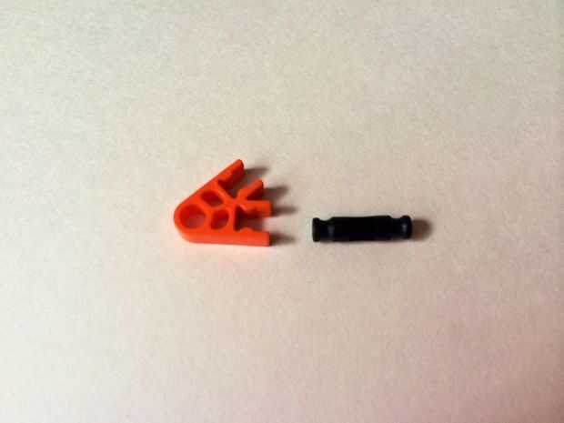La pieza naranja vista aumentará grandemente exactitud. La barra transversal agrega rigidez al accesorio, y el dial le dará a la pieza una sensación realista.