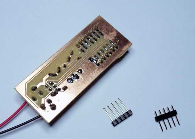 Los pines para el adaptador de tablero de pan son empujados a través y soldadas desde el lado inferior. Aunque no es ideal, normalmente debería funcionar.