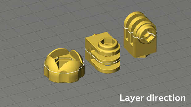 Modelamos el adaptador en dos partes es debido a cómo funciona la tecnología de impresión de FDM. Establecen capas de plástico fundido, cada nuevo adherirse uno a la siguiente, pero no completamente y no es suficiente para crear una pieza homogénea. Por lo tanto habrá puntos débiles a lo largo de la estructura de capas, y capas más cortas, como las de alrededor donde se insertaría la montura GoPro si fue impreso de pie, son más frágiles. Si usted asegurarse de que las capas son más largas las fuerzas de cualquier curva obtener distribuidos a lo largo de la capa de abajo y corre mucho romper la impresión durante el uso, y esto es lo que logramos mediante la impresión de la parte superior del adaptador que se establecen.
