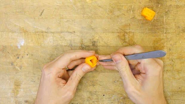 Desafortunadamente impresiones generalmente no salen impresoras 3d en un estado utilizable, especialmente no de impresoras FDM, por lo que se requiere alguna limpieza. Realmente no hay ninguna magia a este proceso, solo saque cualquier material de apoyo usted puede obtener acceso a, raspar y cortar el resto y afinar las áreas críticas (como donde caben la carcasa GoPro) con archivos o documentos de arena.