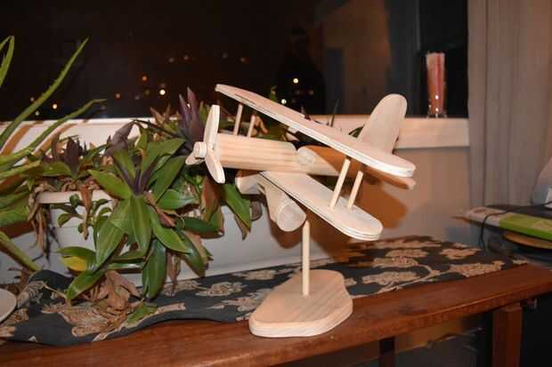 Encontrar otro pedazo de chatarra de pino a mano alzada una forma para la base y perfore un agujero para el soporte, pegue algún taco. En el avión que perforar un agujero en un ángulo por lo que cuando está en la base da la apariencia de vuelo.