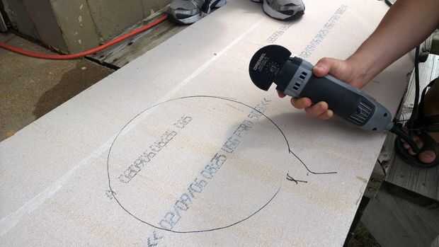 Empezamos con el máximo de Multi para cortar el agujero. En nuestra experiencia, sabíamos que el Multi Max hizo un gran trabajo en el corte straight-line. Estábamos seguros acerca de las curvas. Como se puede ver en la segunda foto, el tamaño de la hoja tiende a hacen que sea difícil ir alrededor de las curvas.