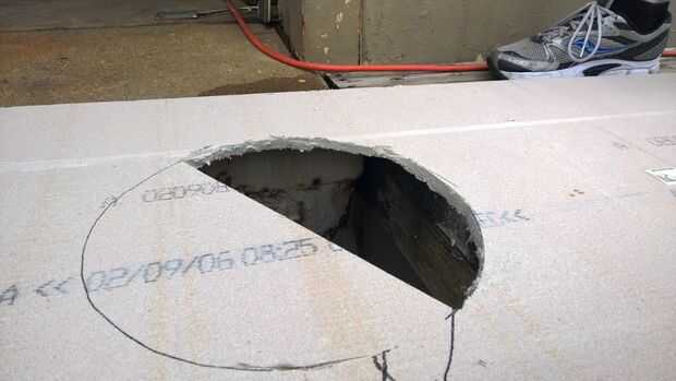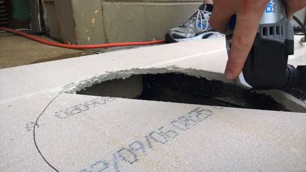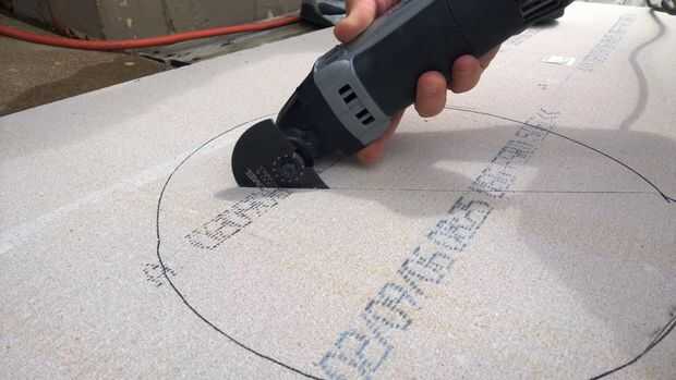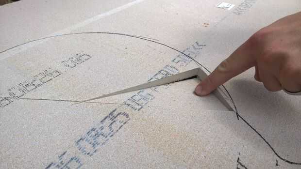 Cortamos una línea recta por el medio del círculo utilizar Multi Max, que era fácil y limpio que hacer. Luego cortamos cuñas en forma de pastel por la mitad del círculo. El resultado fue una mitad de un círculo de corte, pero con bordes tallados en lugar de una curva suave agradable.