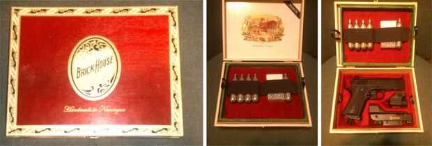 He hecho personalizado inserta equipada para llevar casos antes de usar (ver ejemplos) laminado cartulina para hacer un corte de un esquema de los contenidos y bloques. En esos casos, había mucho más espacio, pero con la pistola y dos lugares de interés en el caso del cigarro, no había mucho espacio a la izquierda corte un bloque sólido de cartón dejaría poco dejado detrás y probablemente sería demasiado endeble. Decidí seguir con el cartón, que es gratuito y fácil de trabajar con, pero usar más de un "Inglés apropiado", o estilo de particiones. Esto me dejaría a construir las formas, más bien que cortarlos hacia fuera y como las particiones son compatibles en cada extremo, produciría un inserto resistente.