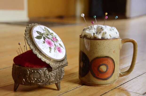 Hacer un alfiletero de una caja de joyería Vintage o taza de café
