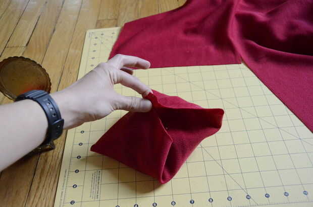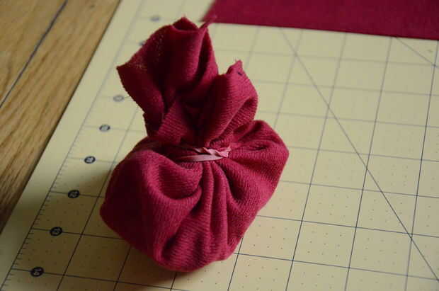 3. Apriete las cuatro esquinas de la tela juntos y envuelva la banda de goma alrededor de él.