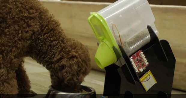 si tienes dos gatos y uno de ellos está en una dieta pero el otro necesita comida gratis, usted puede construir un alimentador con capacidad RFID que sólo se abre para el gato que tiene acceso libre. El gato libre de alimentos lleva un collar con una