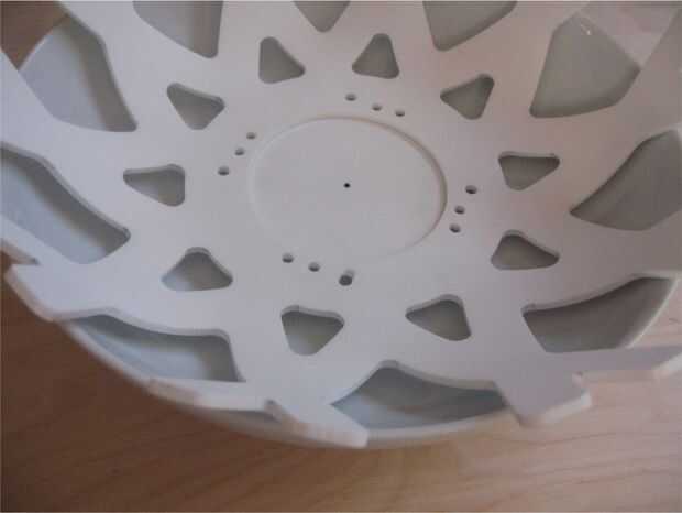- Mientras el acrílico todavía está caliente, introdúzcalo en el recipiente, asegurándose de utilizar el círculo de centro correctamente, asegúrese de que usted presione en los lados que hacen uniforme