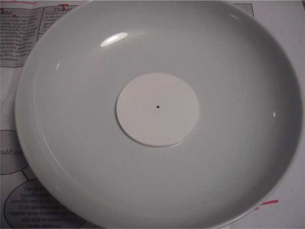 - En primer lugar colocado el círculo, que previamente había láser corte, en el centro del tazón de fuente - esto lo hice a ojo.
