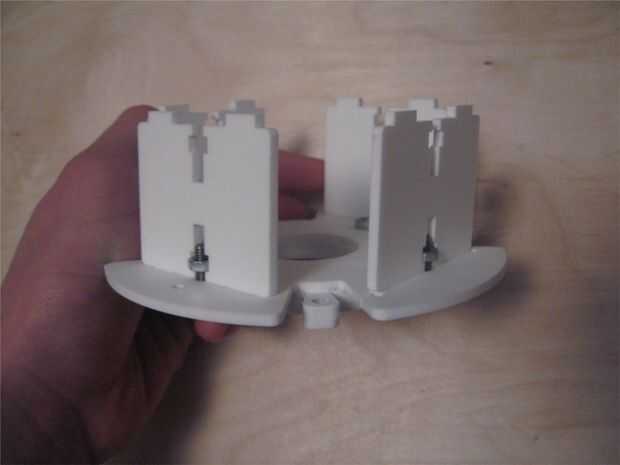 2. Entonces usted necesita poner 4 pernos de 20mm a través de dos conectores de pared y una placa trasera, fijada con 4 tuercas. (Fotografías 3 + 4)